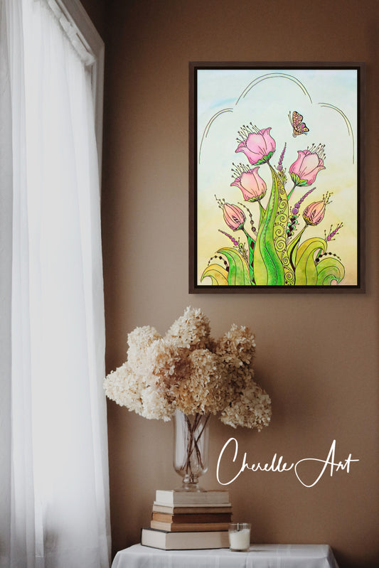 125. Gallery Wrap Canvas Print - "Wild Pink Zen Tulips"
