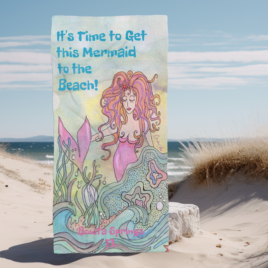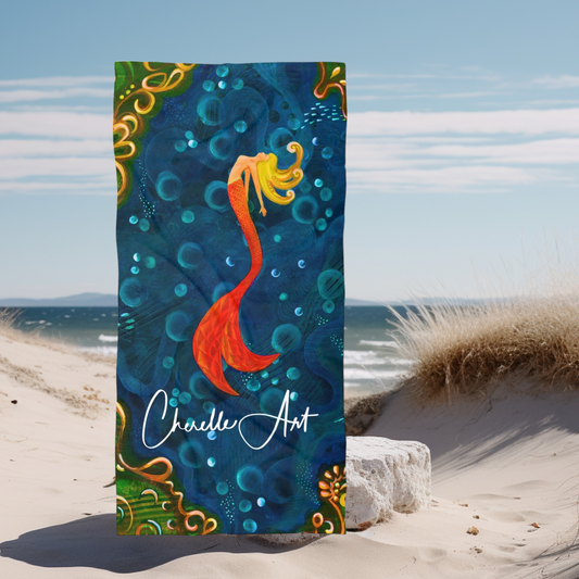 Take these beautifully designed towels, decorated with her uniquely painted fish and mermaids and show them off at the beach or by the pool!