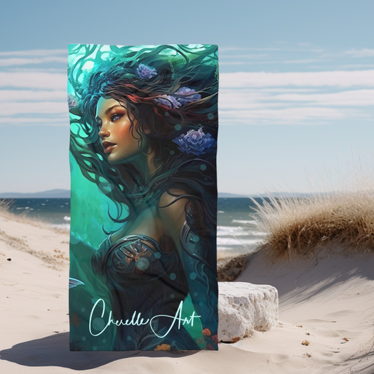 These are special heavy duty and luxuriously soft beach towels designed and printed with Cherelle Art's paintings and drawings. Her art is heavily influenced by the ocean and there is no better place for her art to be than next to the water!